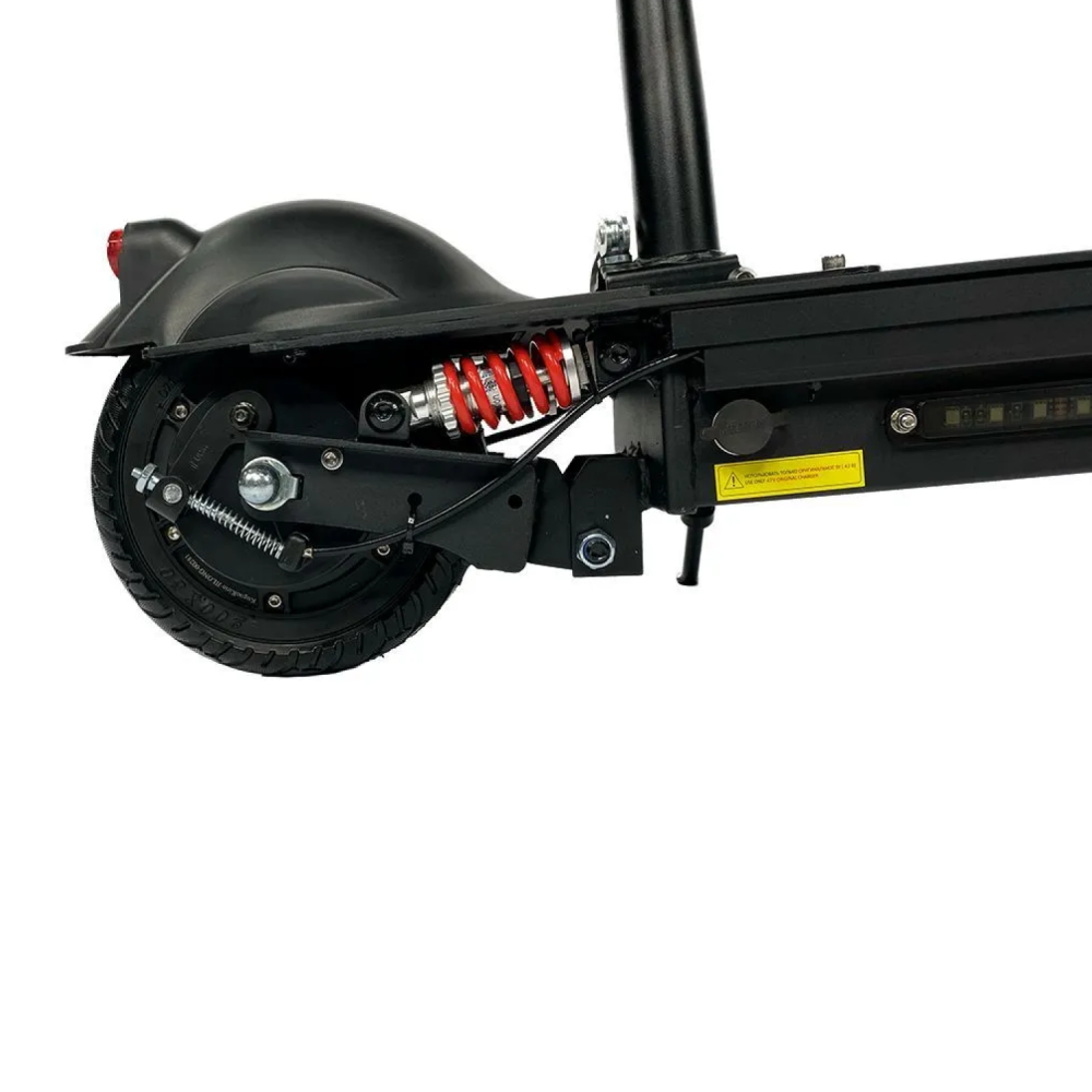 Конструкция каркаса основательная, съемное, мягкое сидение можно отрегулировать по высоте, оно оснащено дополнительными амортизаторами. Руль складывается и регулируется по высоте. На нем установлен рычаг заднего тормоза, звуковой сигнал, включатель световой подсветки. Внешнее освещение состоит из фары впереди, стоп-сигнала сзади и по бокам деки светодиодной подсветки. С правой стороны руля крепится бортовой компьютер.