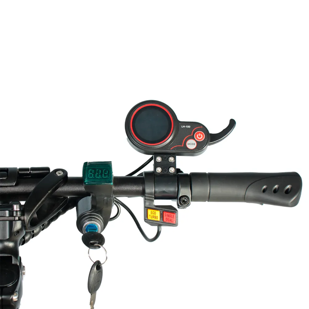 YOKAMURA RX1 оснащен мощным двигателем 1200 Вт. Такая мощность позволяет ему передвигаться по бездорожью, с легкостью покорять подъемы. Рельефная поверхность шин на 10.5 дюймовых колесах отлично этому способствует. Питание двигателя происходит от аккумулятора емкостью 21 А*ч. Напряжение 48 вольт.