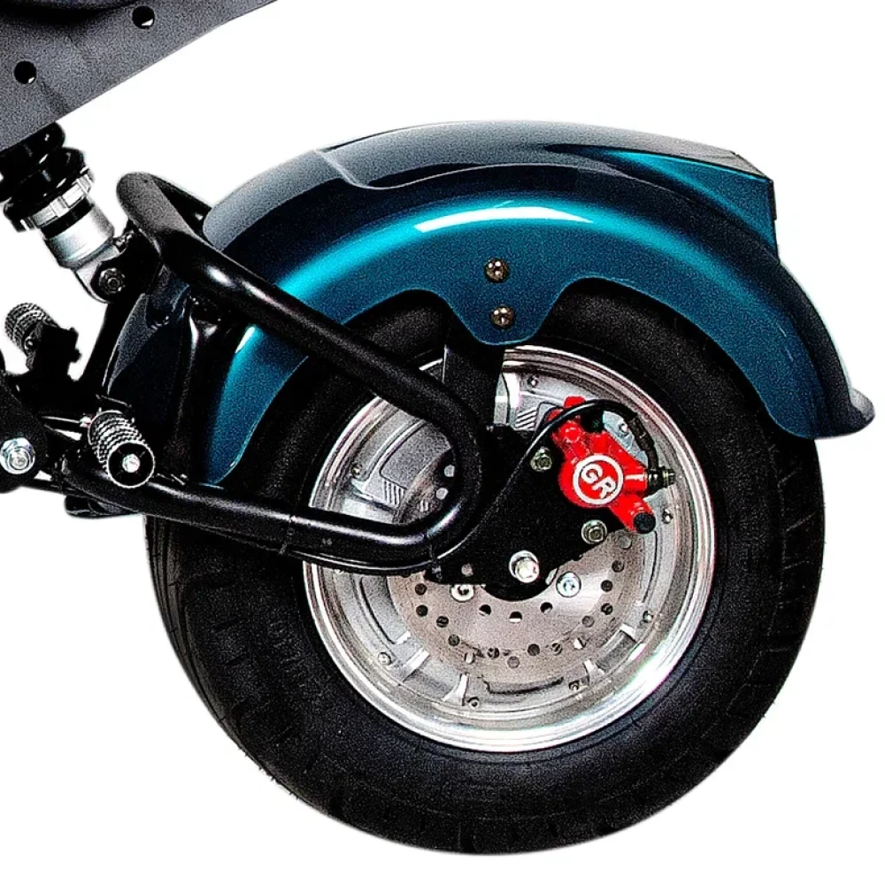 Этот электроскутер также обеспечивает безопасность водителя и пассажиров благодаря переднему и заднему тормозам, а также фаре и стоп-сигналу для повышения видимости на дороге.