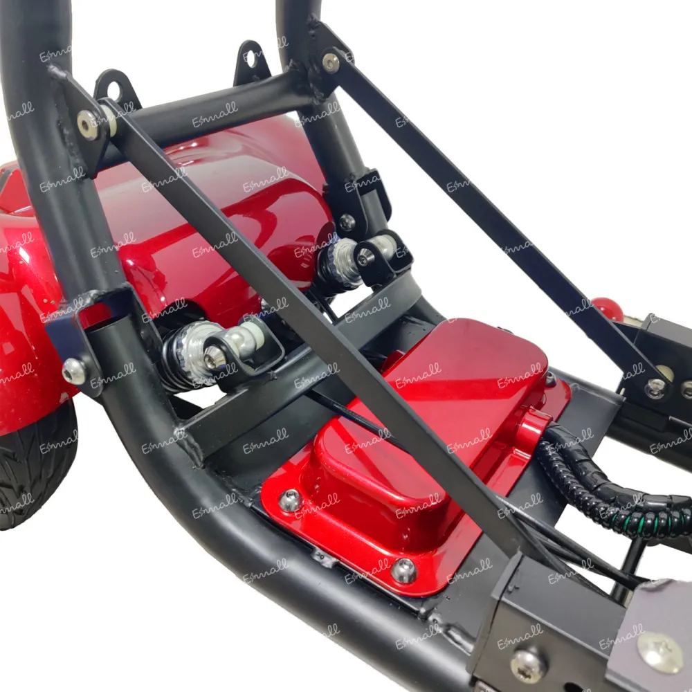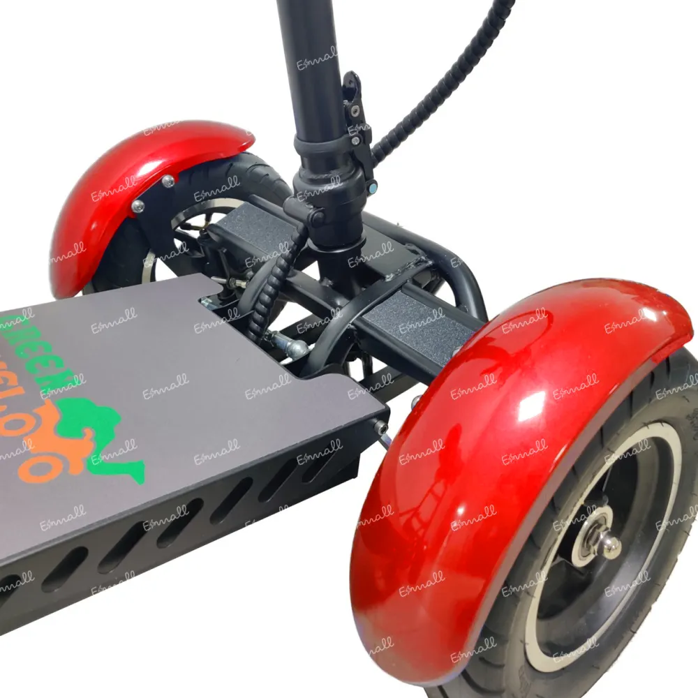 При мощности мотора 800 Вт максимальные параметры скорости составляют 18 км/час. Движение вперед и назад осуществляется посредством нажатия ручки газа.  Широкая платформа для ног позволяет одновременно размещать 4 стопы.