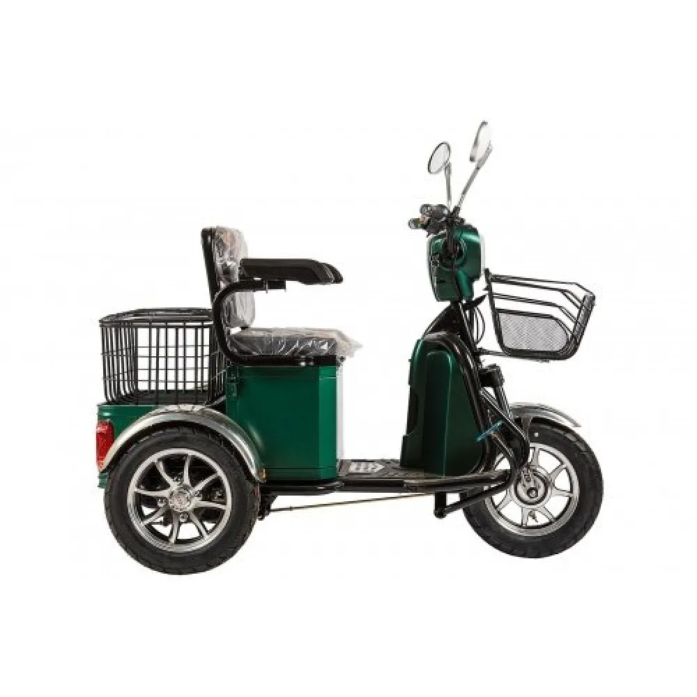 Электротрицикл Rutrike S1 V2 с большой корзиной, зеленого цвета – новинка сезона и лучший друг дачников. Модель рассчитана для поездок за покупками, выезда на природу и пикник. Получить в подарок технику несомненно захочет старшее поколение. Тс пригодится на дачном участке и на стройке, для перевозки небольшой клади. Модель обладает сверхустойчивостью, позволяет свободно преодолевать дорожные неровности. Цветовое оформление смотрится натурально, придется райдерам по душе. Наша компания готова предоставить команду профессионалов для качественной консультации и обслуживания, персональные скидки и специальные предложения.