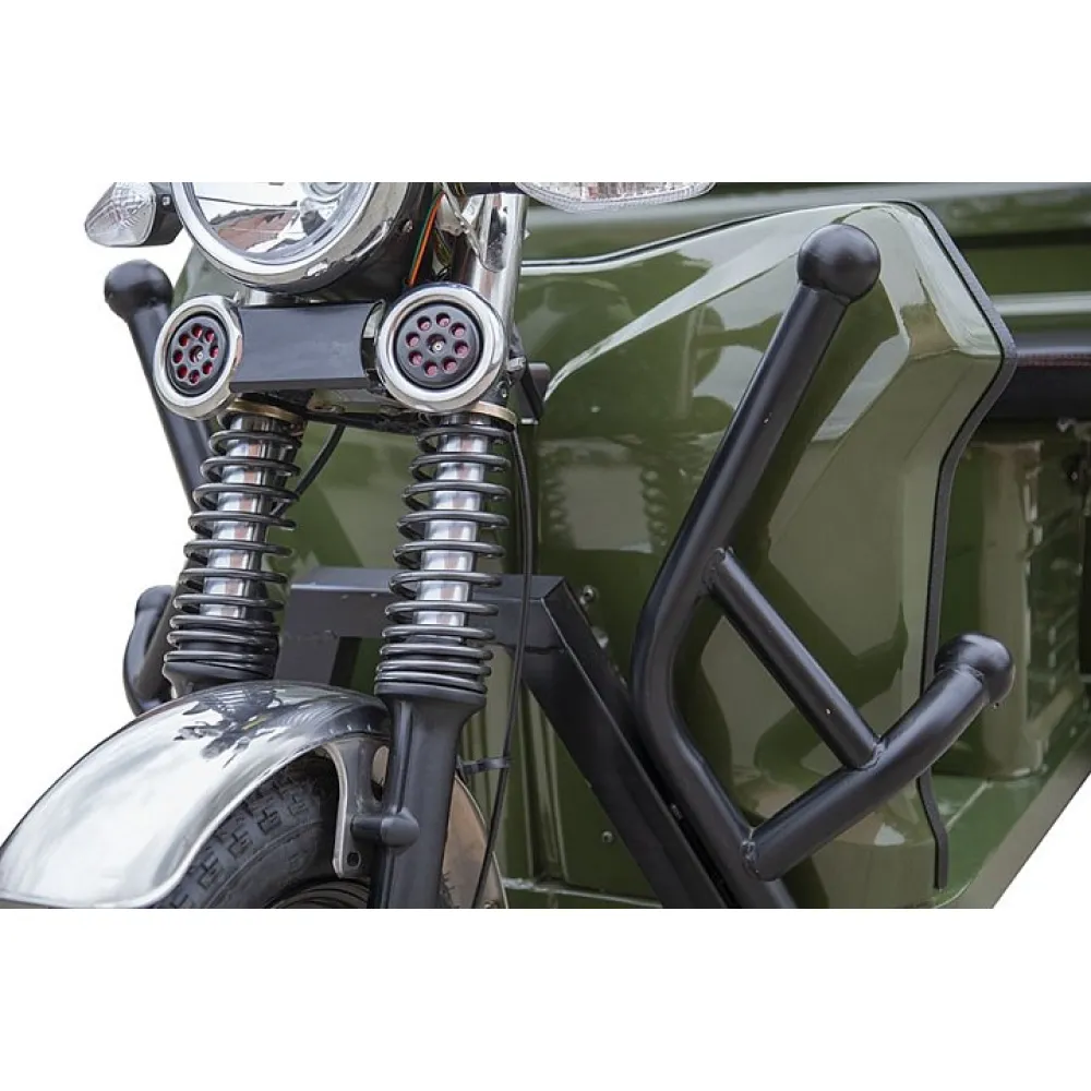 Грузовой электротрицикл Rutrike D4 NEXT 1800 60V1200W зеленый –  Лидер продаж сезона 2021 года. Выглядит шикарно, воинственно. Дизайн электротрицикла подтверждает, что техника создана для настоящих мужчин.