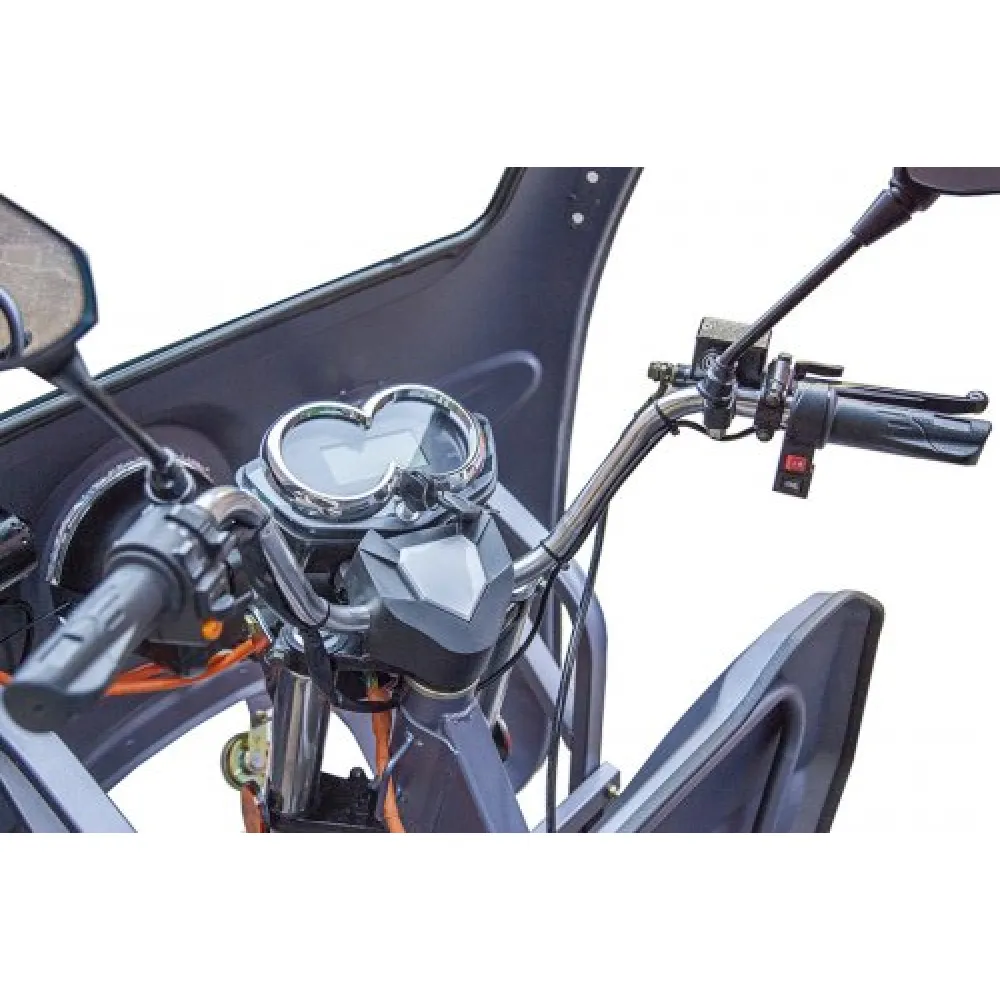 Емкий АКБ и качественный двигатель допускают развитие скоростных характеристик и до 25 км/час при максимальном прохождении пути от 40 - 80 км. Электротрицикл оборудован гидравлической тормозной системой и амортизаторами, обеспечивающими плавность движение и отсутствие проблемой с преодолением препятствий. Транспорт имеет гарантию производителя (1 год).