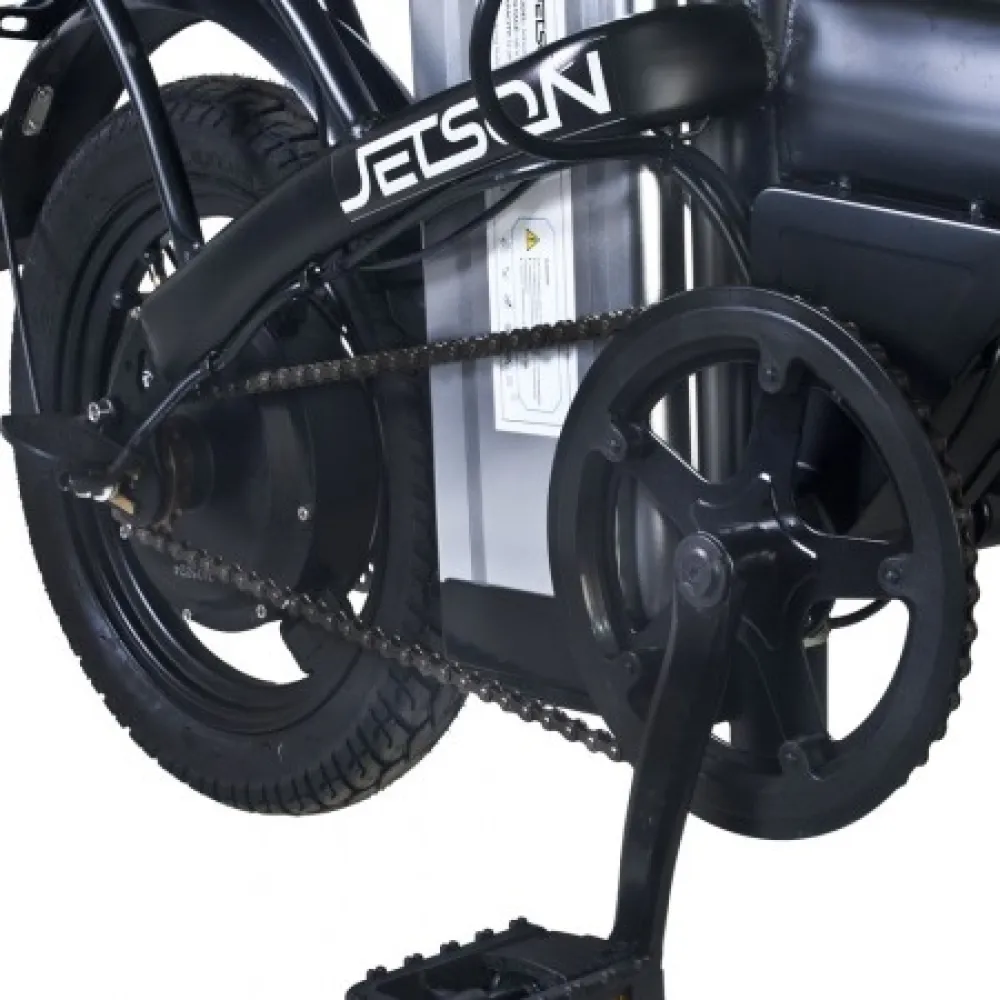 Электровелосипед Jetson V2-M 350W (48V/12Ah) черный – техника с заниженной конструкцией рамы и дополнительным седлом востребована семейными парами для ежедневного использования. Покупка электровелосипеда решит проблему доставки ребенка в садик или школу минуя общественный автотранспорт. Купить современный велогибрид грузоподъемностью не менее 100 кг предлагает наш интернет-магазин.