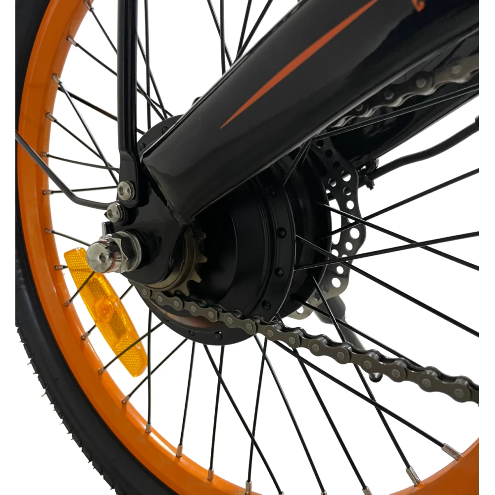 Kugoo Kirin V1 Pro — компактный и стильный электровелосипед для города. Прочная стальная рама выдерживает до 120 кг, а вес 21,1 кг делает его лёгким и удобным для хранения и перевозки.