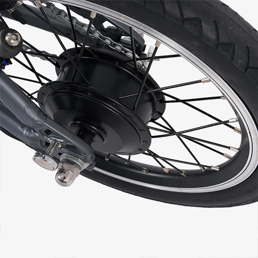 Dahon K-Feather 16" Grey — сверхлёгкий складной электровелосипед весом всего 12 кг с 16-дюймовыми колёсами, предназначенный для компактных городских поездок на расстояния до 40 км на одном заряде.​