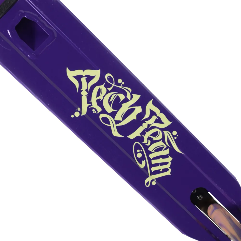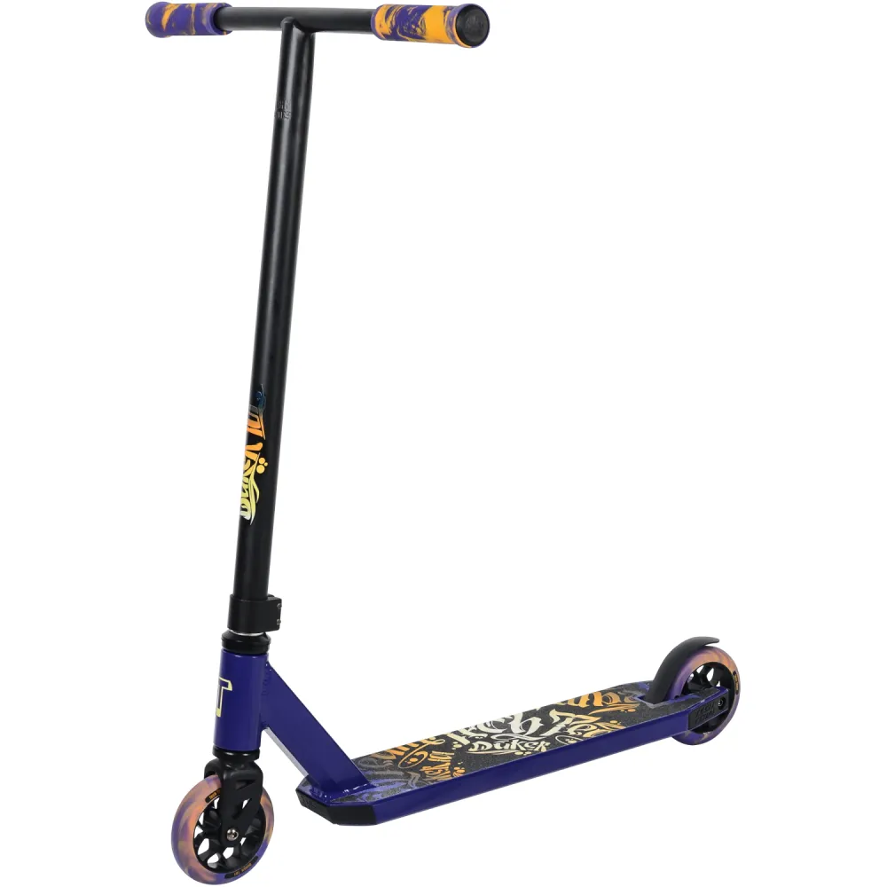 Самокаты изготавливаются в чёрных и фиолетовых тонах с дизайном «леттеринг». Грипсы 12 см, имеют два цвета с барендами из пластика.